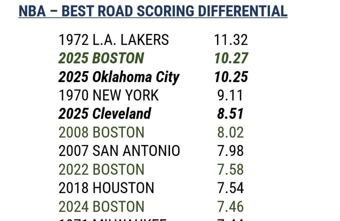 2025-03-27 18:56:23凯尔特人本赛季6场客场25+大胜 历史第3多 仅次于16马刺和22绿军