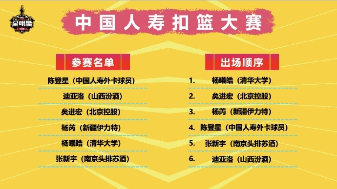 根据抽签结果,技巧赛首轮偰李永炜VS徐杰,赵继伟VS朱俊龙,原帅三分大赛压轴出场,迪亚洛则是扣篮大赛最后一个出场。